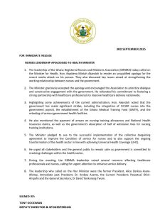A statement issued by the Deputy Director and Spokesperson, Tony Goodman, on September 3, 2025, said the GRNMA leadership also discussed with the Minister key issues aimed at strengthening the working relationship between nurses and the government.